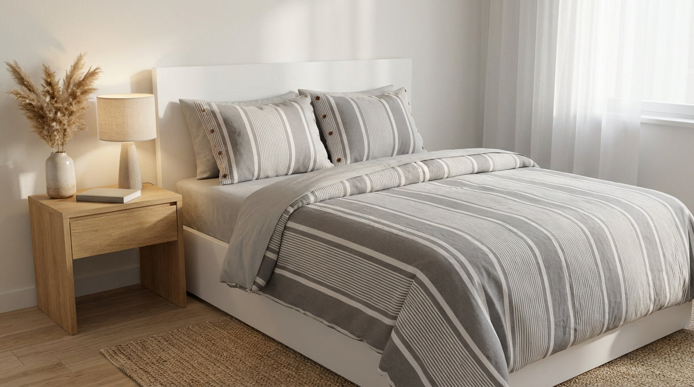 Ecobox Ballere Gri Çift Kişilik %65 Pamuk Nevresim Takımı 200 x 220 cm