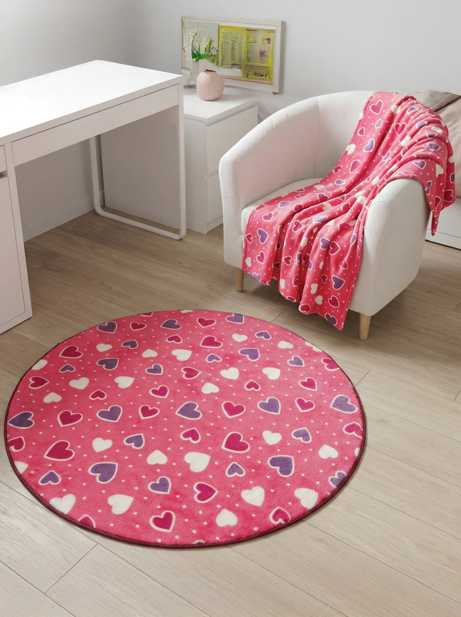 Yuvarlak formdaki küçük halı ile oyun ve oturma alanlarında tamamlayıcı kullanım